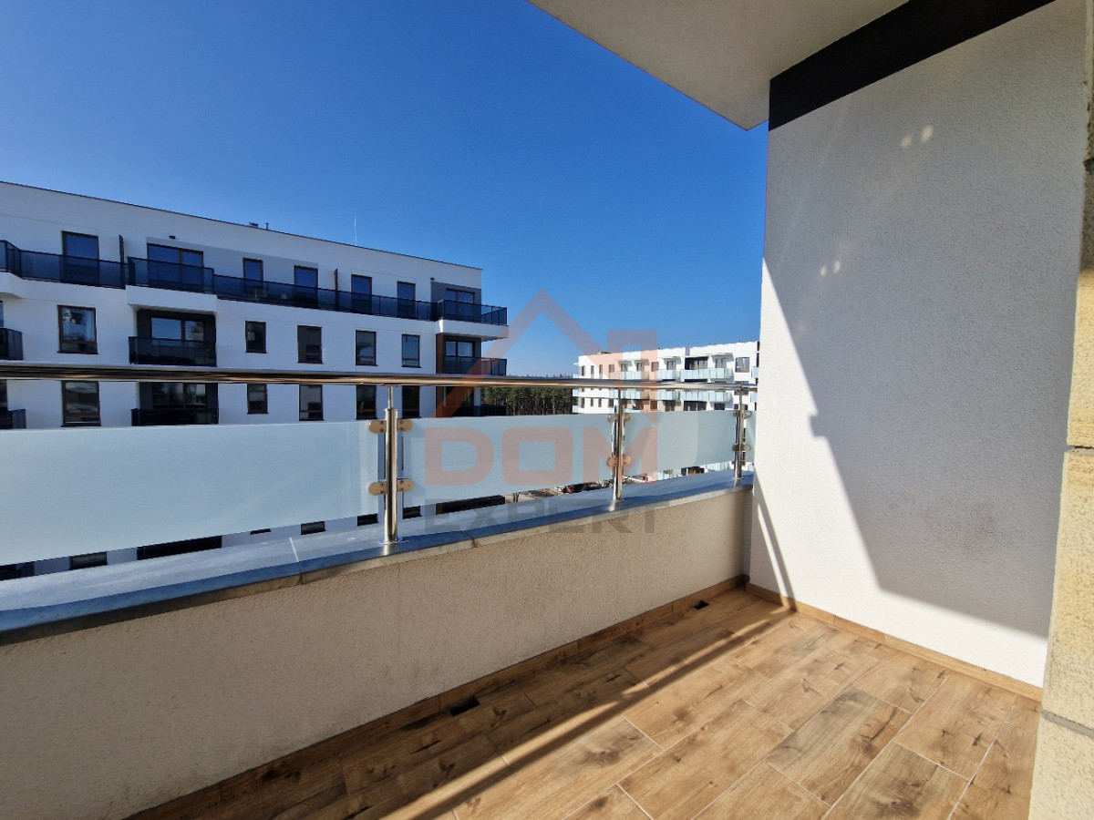 Atutem mieszkania jest bez wątpienia obszerny balkon z pięknym widokiem na tereny zielone.